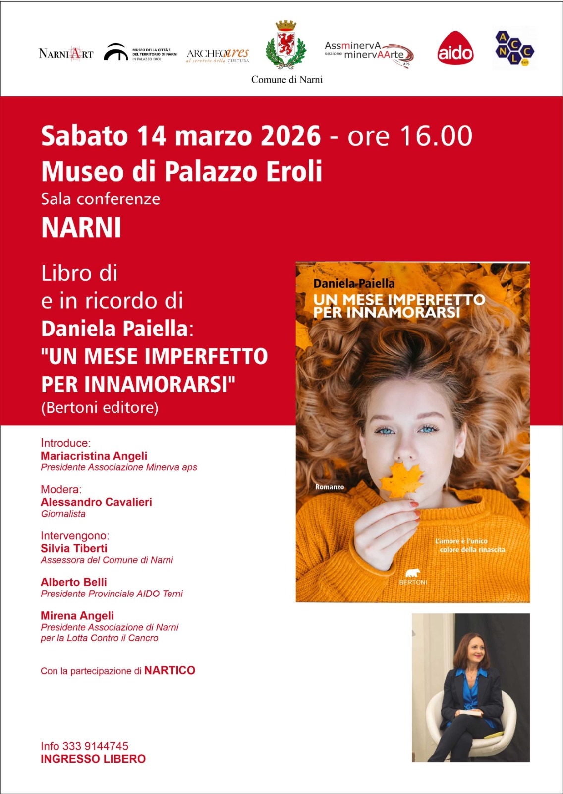 Alle ore 16:00, presso la sala conferenze del Museo di Palazzo Eroli, si terrà un evento da non perdere dedicato al libro “Un mese imperfetto per innamorarsi” di Daniela Paiella, edito da Bertoni.